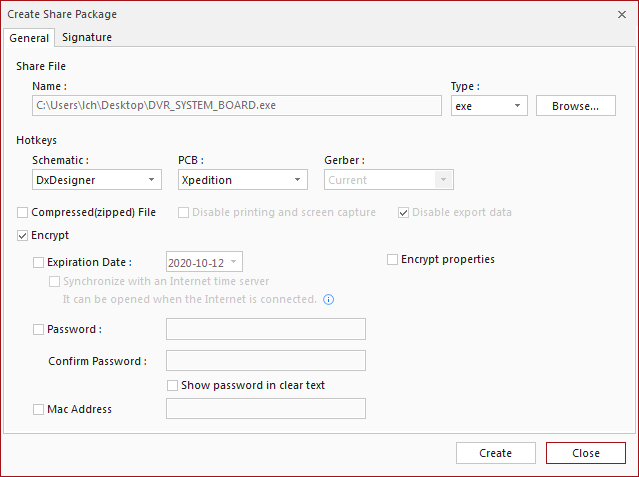 In interCAD Editor, PCB Layout and Schematic (design drawings) can be encrypted and shared safely through the Share Package function, so technology leakage can be prevented in advance.