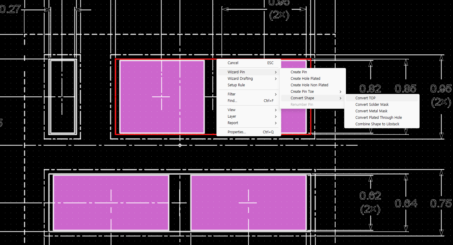 - Solder Mask 부분의 Shape을 선택하고 Convert Solder Mask 메뉴를 클릭합니다.