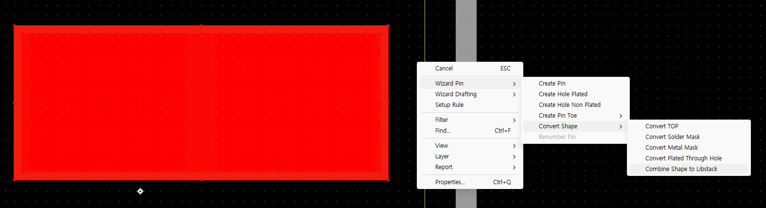 - 하나의 Pin으로 만들 Polygon들을 선택 후 Combine Shape to Libstack 메뉴를 클릭하여 Pin을 만듭니다.