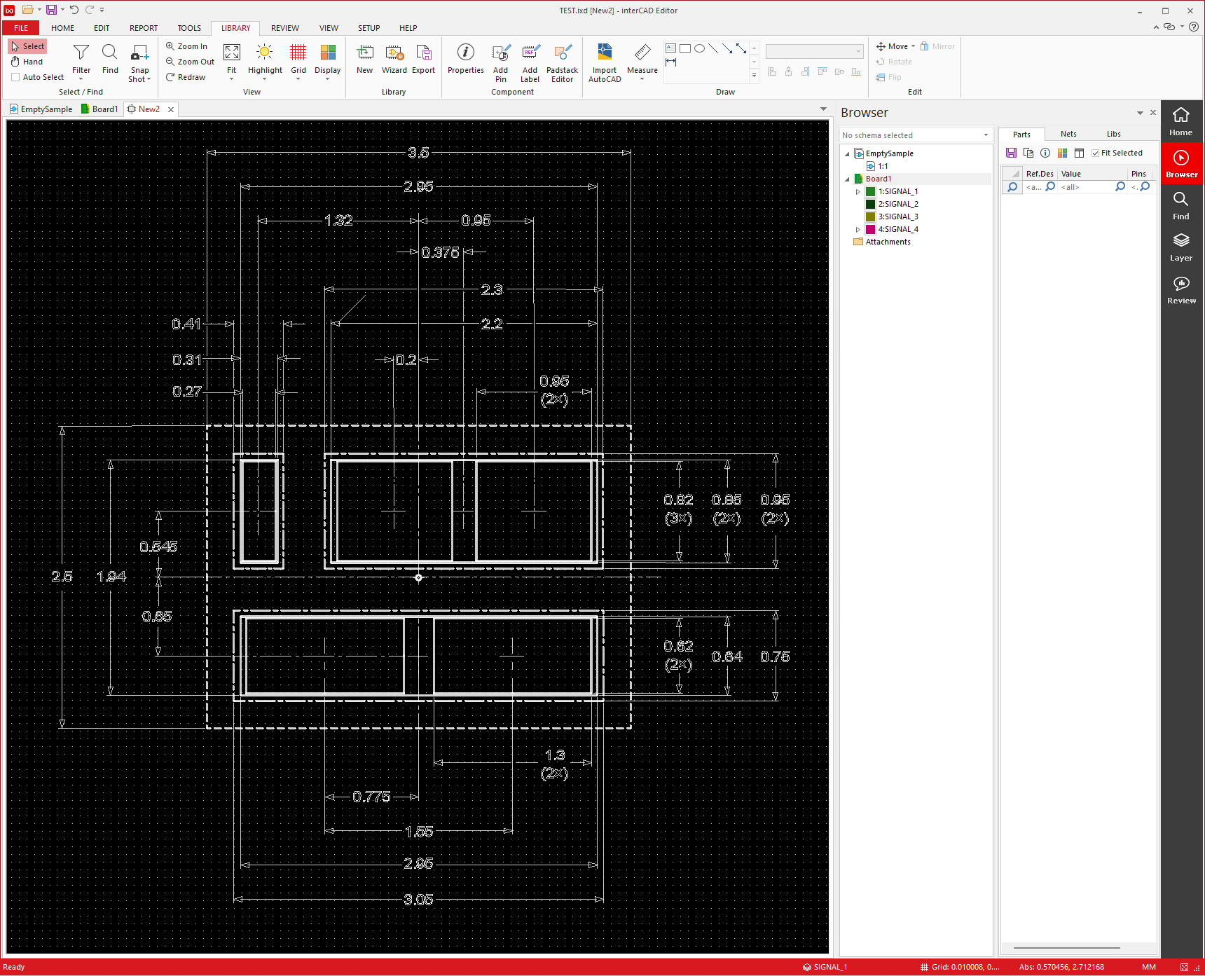 interCAD Editor에서는 LibraryWizard 기능을 통해 DXF를 import 하여 DXF와 똑같이 Footprint를 생성할 수 있습니다.